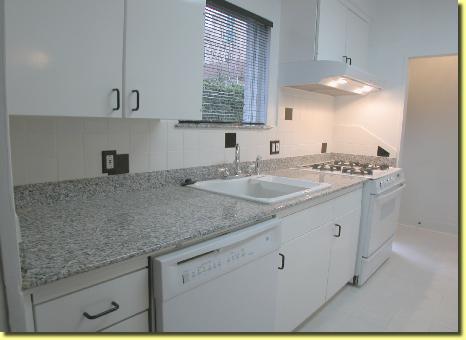 | The kitchen has been completely remodelled, with granite countertops and backsplashes, new anti-skid ceramic tile floor, new ceramic wall tile, new GE frost free refrigerator with ice maker, newly refinished cupboards, and top of the line GE gas range/oven, new GE whisper quiet dishwasher, new ceramic finished cast iron sink and Kohler fixtures, new garbage disposal and new GE profile vent hood with adjustable lighting. Kitchen has tremendous storage, with over 20 large cabinets. Eight additional large cabinets are in the adjoining study/sun room. | | |