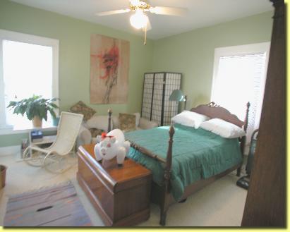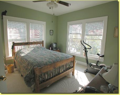 Master bedroom (above) features plush berber carpeting, accent paint, ceiling fan, four large windows and a closet. | ||||||||||||
